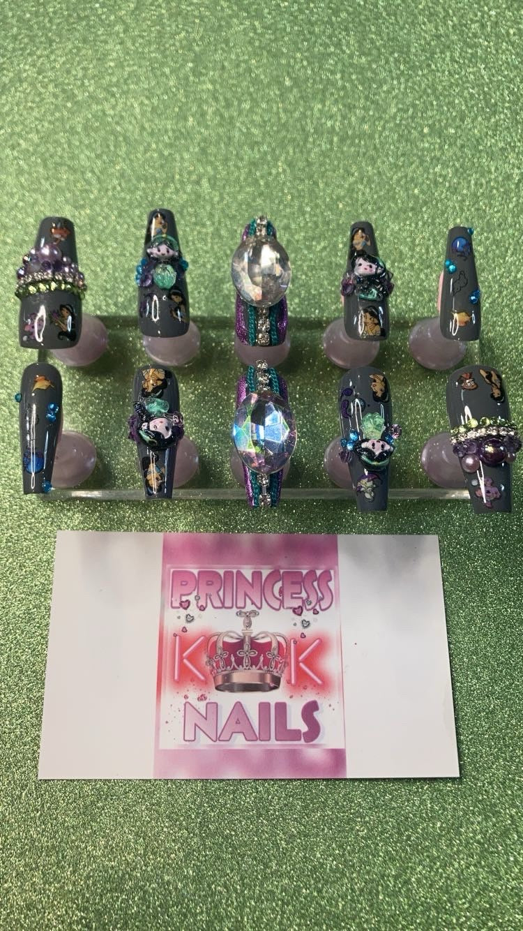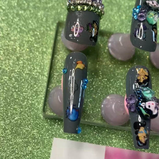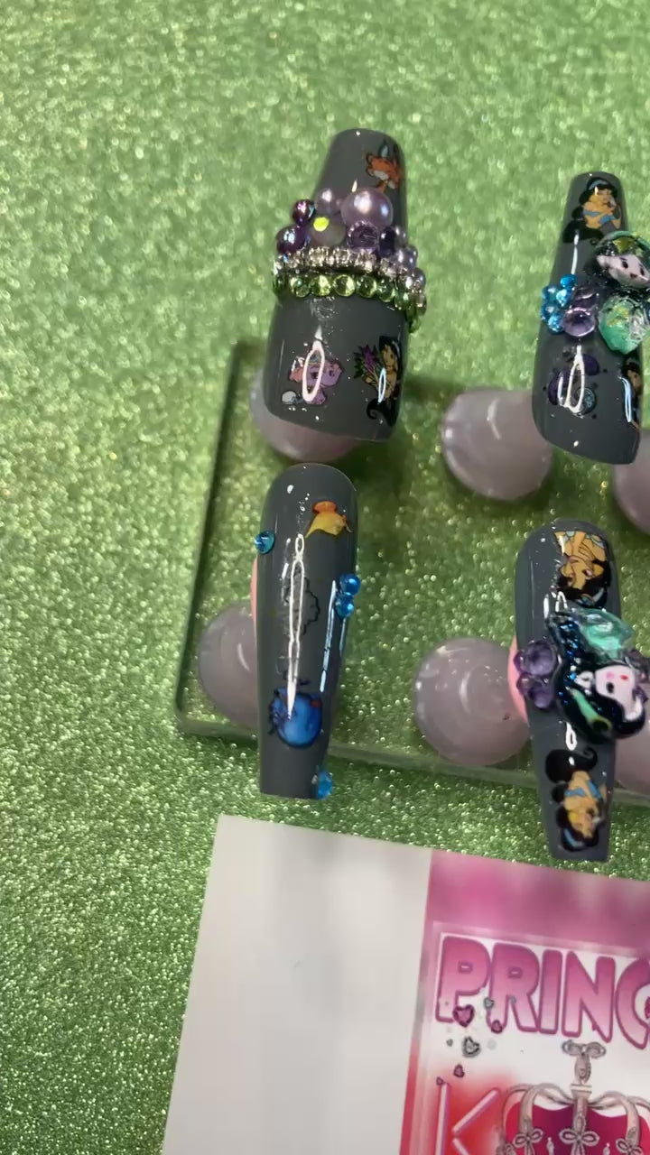 With these XL grey bedazzled press on nails adorned with Disney's Jasmine and jewels, JASMiNE LUXE adds a touch of royal glamour to your look. Perfect for most occasions, these nails are easy to apply and provide a flawless fit for long-lasting wear. Channel your inner princess with JASMiNE LUXE.
